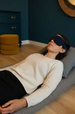 - Respiration consciente guidée (environ 55 min) – Allongé·e, les yeux fermés, tu respires en rythme. Je te guide par la voix et la musique.